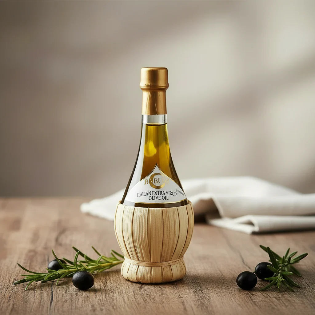 Material: First cold pressed olive oil Olive Oil Description: Superior category Extra Virgin olive Oil. The cold pressed of three cultivar Frantoio, Leccino and Moraiolo of 100% Italian origin gives life to its unmistakable flavor balanced and fruity. Ideal for use both raw and cooking, to give a sweet and genuine note to each dish, without covering the original taste.